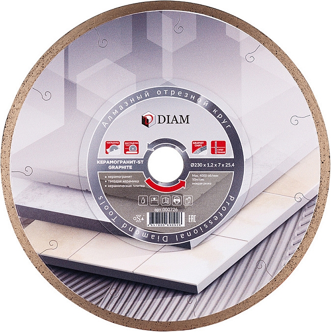 - За счет своей конструкции и отличных рабочих характеристик один из лучших дисков на рынке для качественной резки керамического гранита и твердой напольной и уличной керамики