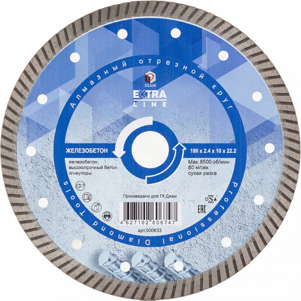 Преимущества алмазного отрезного круга Diam Extra Line Turbo Железобетон 180 мм: