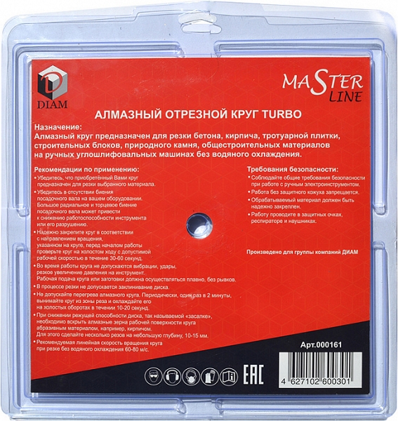 Алмазный отрезной круг Diam Master Line Turbo Master 230 мм (Диам Мастер Лайн Турбо Мастер 230 мм) – профессиональный алмазный диск для сухой резки бетона, слабоармированного бетона, огнеупоров, кирпича, тротуарной плитки, общестроительных материалов.