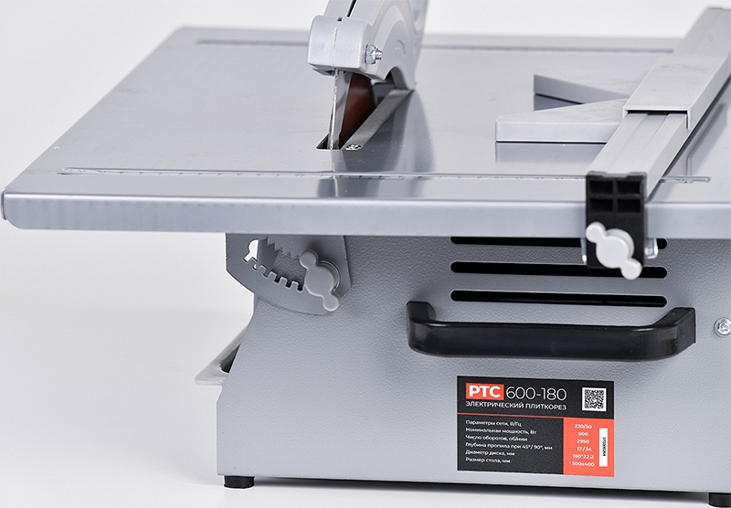 Электрический плиткорез Alteco PTC 600-180 (Альтеко ПТЦ 600-180) – эффективный станок настольного типа для быстрого и качественного распила плитки из керамогранита и керамики неограниченной длины, толщиной до 34 мм при резке под углом 90°, толщиной до 17 мм при резке под углом 45°, различными дисками в зависимости от материала, с подачей воды.