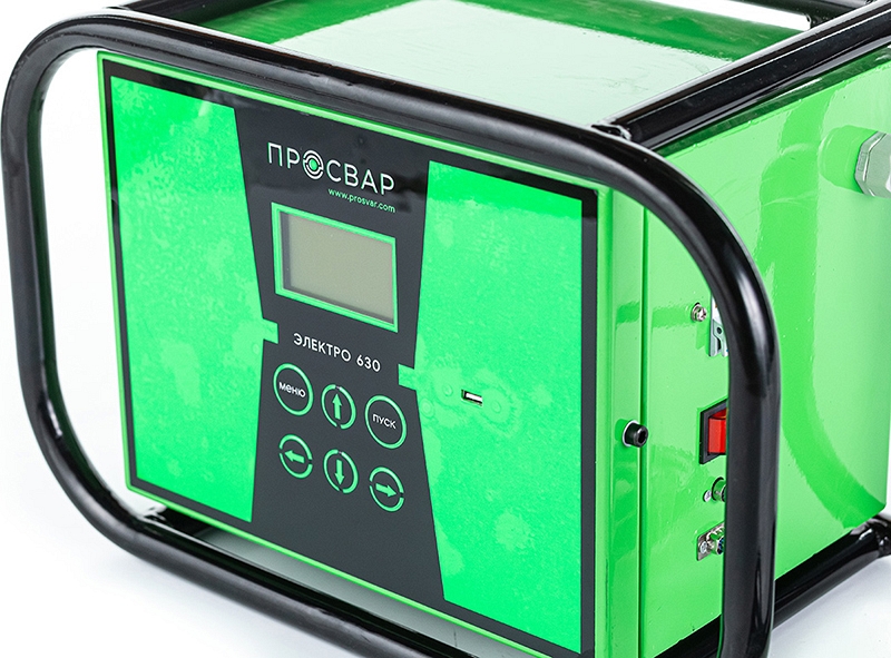 Электромуфтовый сварочный аппарат Просвар Электро 630 (80 В) (Prosvar Electro 630 (80 V)) – универсальный аппарат для электромуфтовой сварки пластиковых (ПЭ, ПП) труб и фитингов Ø 16 – 630 мм с помощью специальных фасонных элементов, соединительных деталей с закладными нагревателями (электросварных муфт), при монтаже инженерных сетей по водоснабжению и газоснабжению, канализационных и отопительных систем.