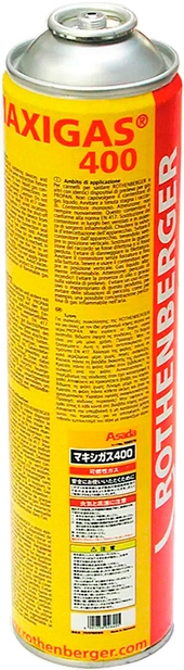 Газовый баллончик для горелки Rothenberger Maxigas 400 (Ротенбергер Максигаз 400) – высокопроизводительный газ на основе ацетилена для сварки, резки и пайки твердым припоем.