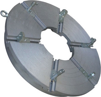 - Фланцедержатель крепится в один из хомутов центратора и предназначен для фиксации литого бурта под фланец с коротким патрубком.