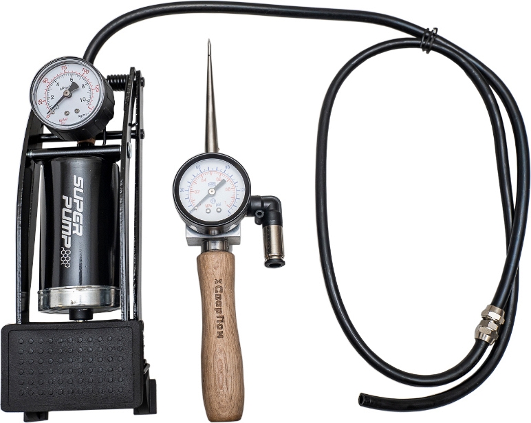 - Полая игла специальной формы из нержавеющей стали, манометр и насос для нагнетания давления