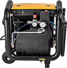 Проверенный мощный безмасляный поршневой компрессор с рычажным приводом и конденсаторным двигателем 230 В, 1500 Вт. Манометр для индикации давления воздуха в ресивере сжатого воздуха. Аварийный выключатель. - Шланги:
