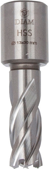 Корончатое сверло по металлу Diam HSS 13×30мм (Диам ХСС 13×30mm) серии Extra Line (Экстра Лайн) предназначено для сверления отверстий Ø 13 мм в углеродистых и легированных сталях, алюминиевых сплавах на магнитных сверлильных станках.