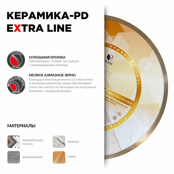 Преимущества круга отрезного алмазного Diam Extra Line 1A1R Корона Керамика-PD 300 мм:
