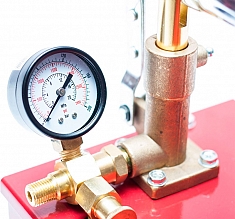 - Постоянство давления в испытываемой системе обеспечивается 2-мя клапанами и вентилем с шаровыми запорами