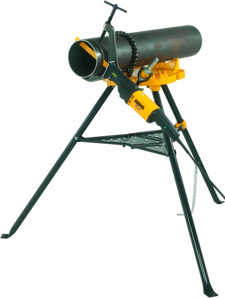 - Rems Акуила 3Б. Станция обработки труб с цепными тисками для труб, сплошных заготовок, Ø 10 – 165 мм (1/8" – 6"). Рабочая плита со встроенными цепными тисками с двойным зажимным кулачком, опорой для трубы, держателями для инструментов, 3-мя гибочными приспособлениями для труб Ø 10 – 26 мм (3/8" – 3/4"), зажимной головкой. Складная тренога с полкой. Предельная нагрузка ≤ 450 кг. В коробке.