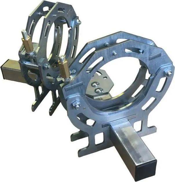 Позиционер для сварки полиэтиленовых труб ПНДело Делатор-160, 2 зажима (PNDelo Delator-160, 2 zazhima) без редукционных вкладышей предназначен для фиксации пластиковых труб и фитингов Ø 63 – 160 мм при электромуфтовой сварке.
