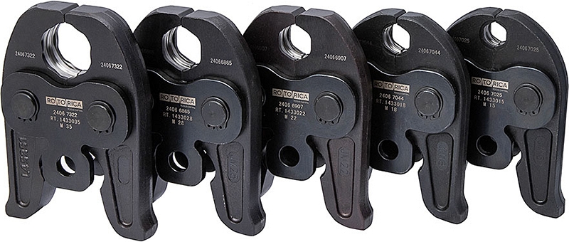 - Оптимизированные размеры и геометрия: оптимизированы по размеру и геометрии, и совместимы с пресс-инструментом Rotorica ProPresser Hydro, M54E, Accu Basic, а также со стандартными моделями европейских пресс-инструментов со схожими техническими характеристиками (усилие, ход поршня, посадочное место оснастки, диаметр фиксирующего шкворня)