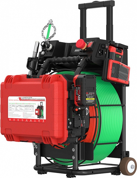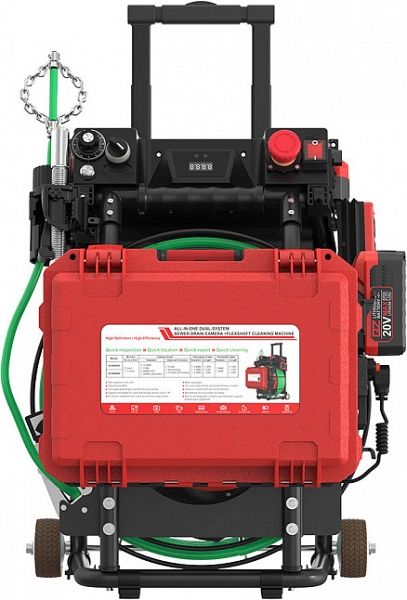 - Компактный дизайн и продуманная компоновка обеспечивают эффективную работу и для обследования труб, и для их прочистки