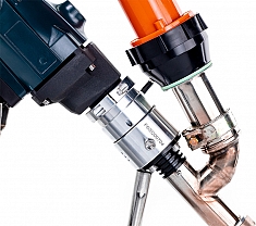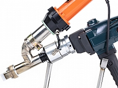 - Сварочное сопло, вращающееся на 360°, значительно упрощает процесс сваривания
