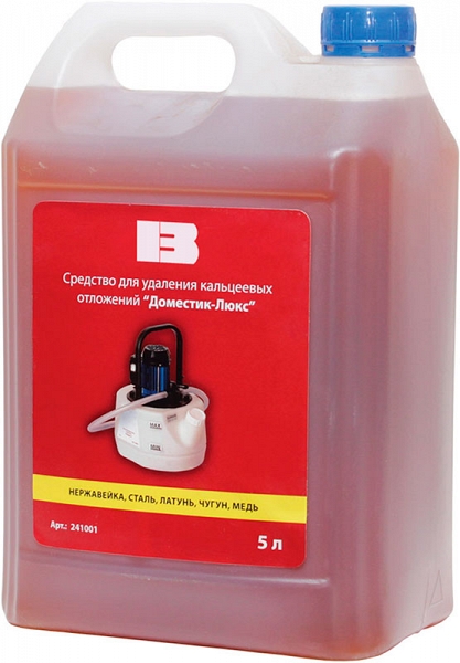 Модель снята с производства! Средство для удаления кальциевых отложений Brexit Доместик-Люкс 5 л (Брекзит Доместик-Люкс 5 л) – химический кислотный реагент, концентрированное жидкое кислотное пенное средство на основе неорганической и органической кислот для очистки теплообменников, резервуаров, емкостей, пастеризаторов, сепараторов, трубопроводов, инструментов и подобного технологического оборудования от карбонатных кальциевых отложений, накипи, окалины, мочевого камня, ржавчины