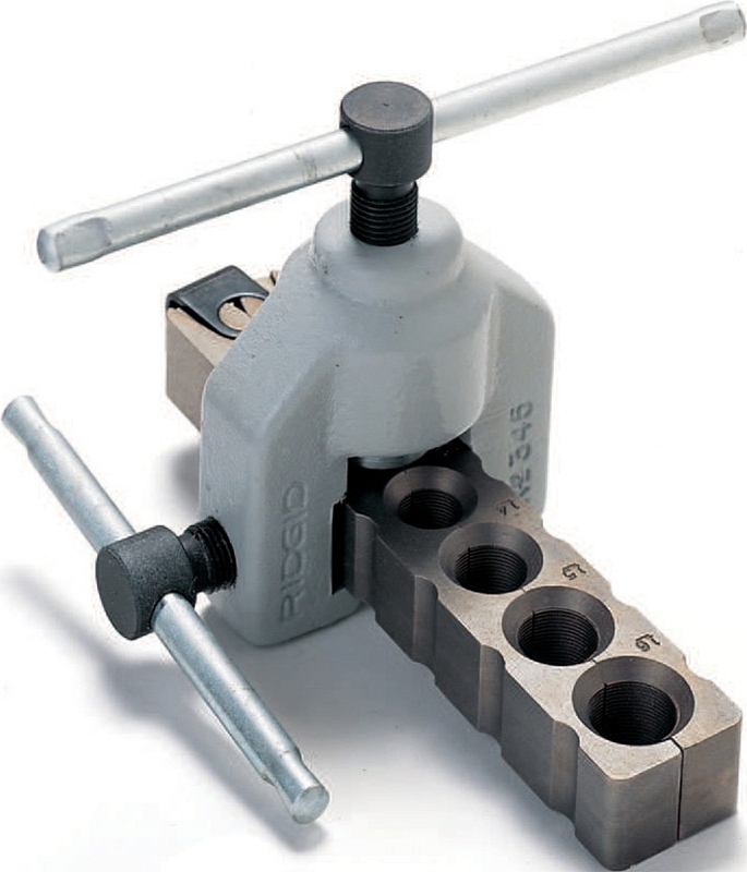 Стандартная развальцовка Ridgid 345 (Риджид 345) – высокоточный инструмент для развальцовки под углом 45° (создания SAE-раструбов 45° с одиночным загибом) труб Ø 3/16", 1/4", 5/16", 3/8", 7/16", 1/2", 5/8" из отожженой меди, латуни, алюминия и мягкой стали.