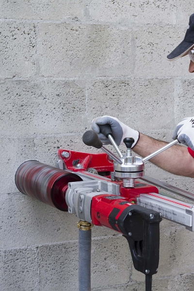 - Фиксатор в основании опорной плиты уменьшает вибрацию алмазной коронки при сверлении