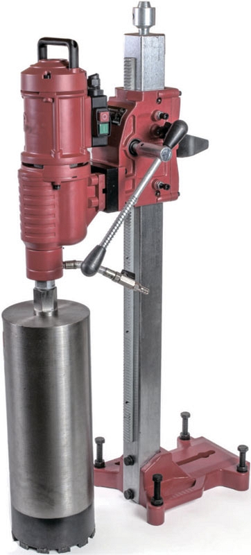 Станок алмазного бурения Brexit BrexDril 405 (Брекзит БрекзДрил 405) предназначена для бурения отверстий алмазными кольцевыми коронками Ø 15 – 405 мм в особо прочных материалах: бетоне, железобетоне разной степени армирования, кирпичной и каменной кладке, натуральном или искусственном камне с подачей воды для охлаждения.