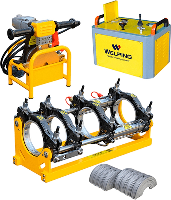 Стыковой сварочный аппарат Welping WP160A (Велпинг ВП160А) – полуавтоматическая электрогидравлическая стыковая сварочная машина для сварки пластиковых (ПЭ (полиэтиленовых), ПП (полипропиленовых), ПВДФ (поливинилиденфторидовых) / PE, PP, PVDF) труб Ø 63, 75, 90, 110, 125, 140, 160 мм на стройплощадках при прокладке дренажных труб и водопроводных магистралей.
