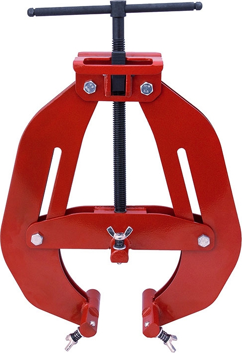 - Окрашенная, разборная, струбцинная, прочная стальная конструкция повышенной прочности из кованной стали состоит из стальной рамы с 2-мя ножками с направляющими прорезями и верхнего прижима с затяжным винтом, которые регулируют охват основных труб, и вкручиваемых в них лепестковых винтов из нержавеющей стали с пружинами для центрирования подсоединяемых труб и элементов: легкий монтаж, надежность и безопасности использования
