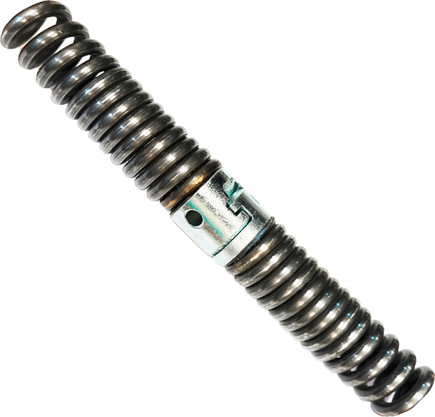 - Универсальный Т-образный замок обеспечивает надежное сцепление спиралей между собой для удлинения и с прочистными насадками