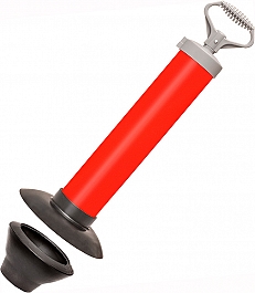 - Поршневой или как его еще называют пневмо действует по принципу всасывающего насоса: воздействует мощным потоком на засор