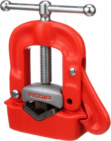 Верстачные откидные трубные тиски Ridgid 21A (Риджид 21А) с хомутной защелкой предназначены для труб Ø 6 – 50 мм (1/8" – 2"). Применяются для резки и гибки труб, нарезки резьбы и накатки желобков на трубах.